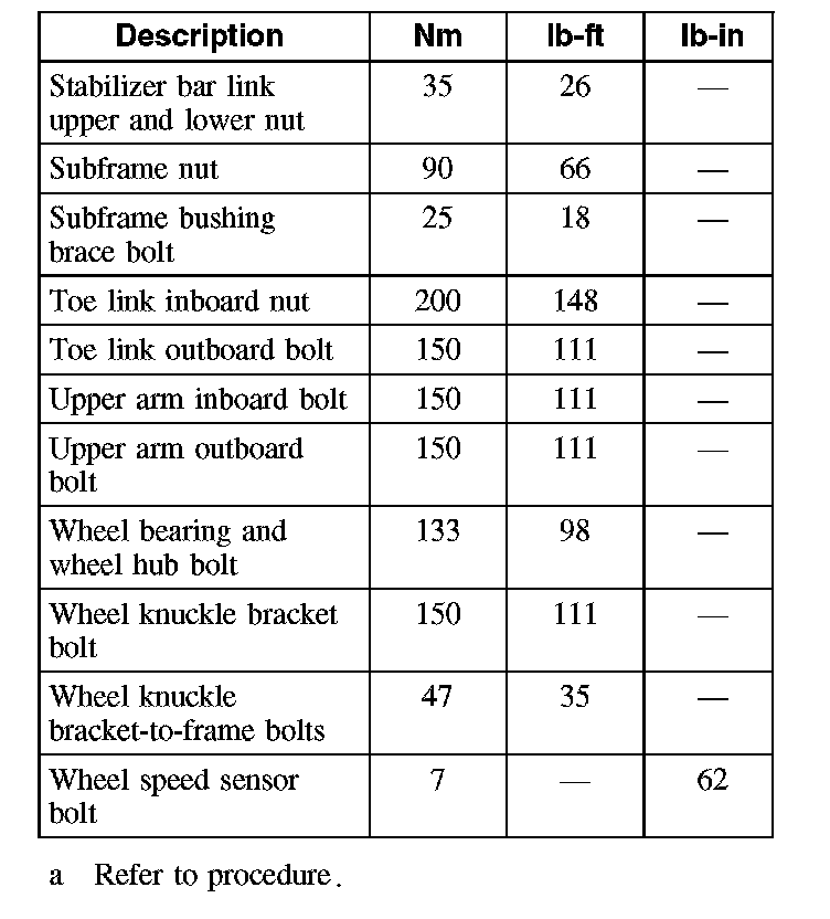 Torque Specifications