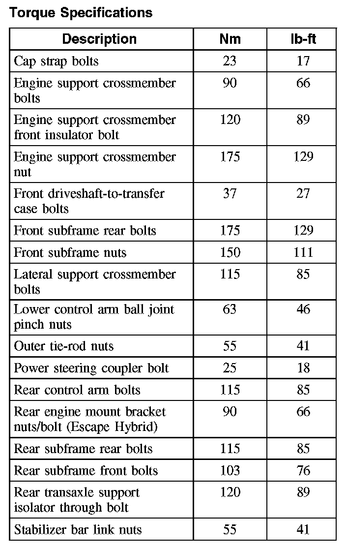 Torque Specifications: