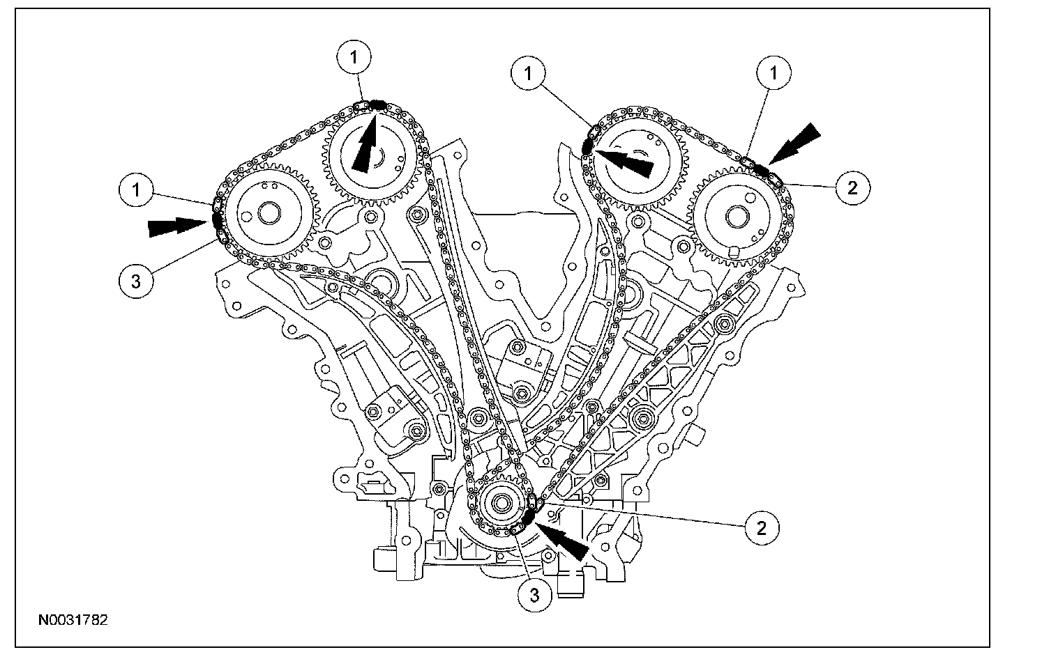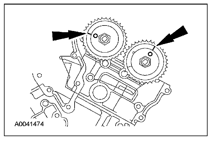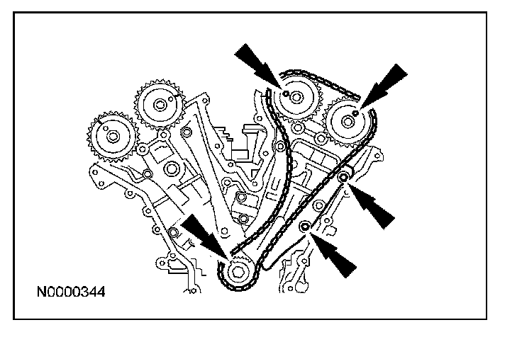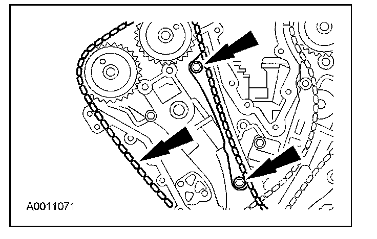 6. If timing marks in the timing chains are not evident, use a permanent-type marker to mark the crankshaft and camshaft timing marks on the LH and RH timing chains.