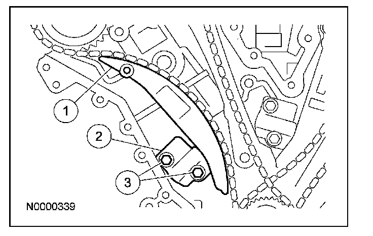 8. Position the LH timing chain and guide and install the bolts.