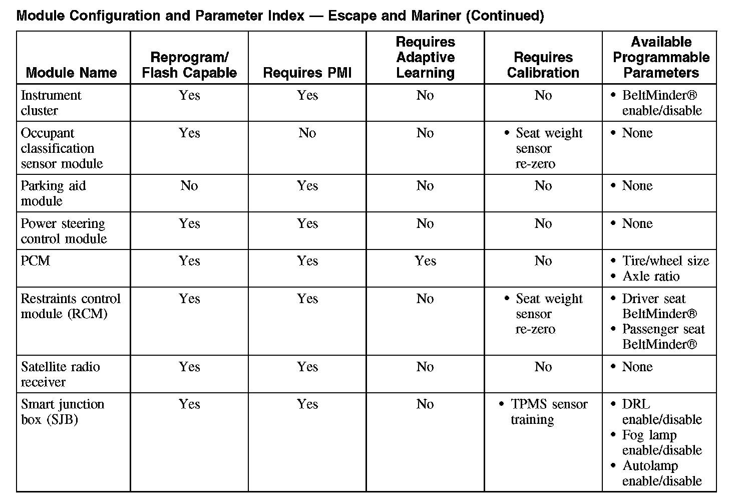 Home >> Ford >> 2008 >> Escape 2WD V6-3.0L >> Repair and Diagnosis >> Powertrain Management >> Computers and Control Systems >> Information Bus >> Testing and Inspection >> Initial Inspection and Diagnostic Overview >> Module Configuration >> Principles of Operation