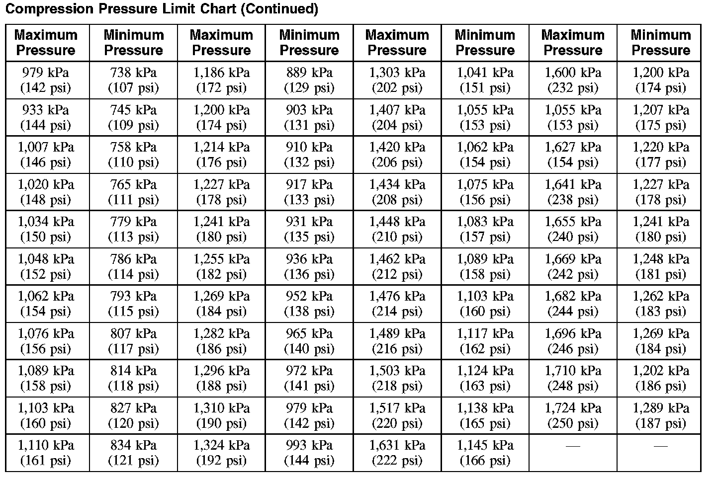 Compression Pressure Limit Chart (Part 2):