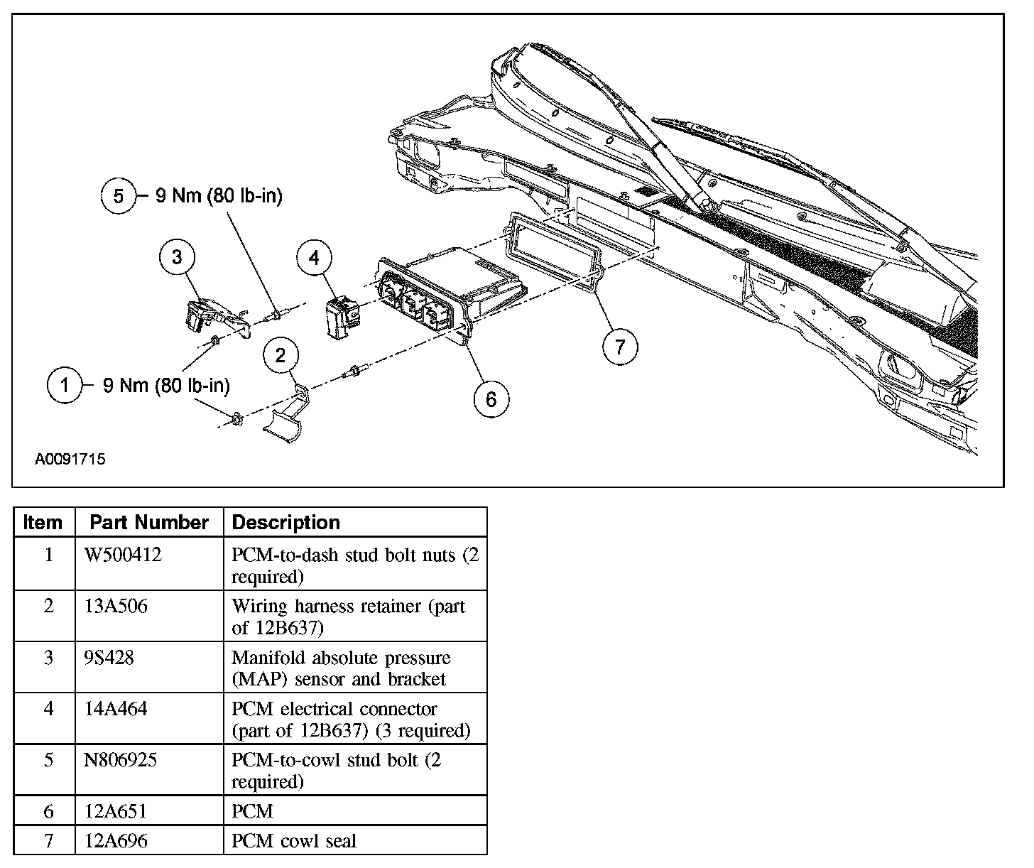 - Tighten to 9 Nm (80 lb-in).