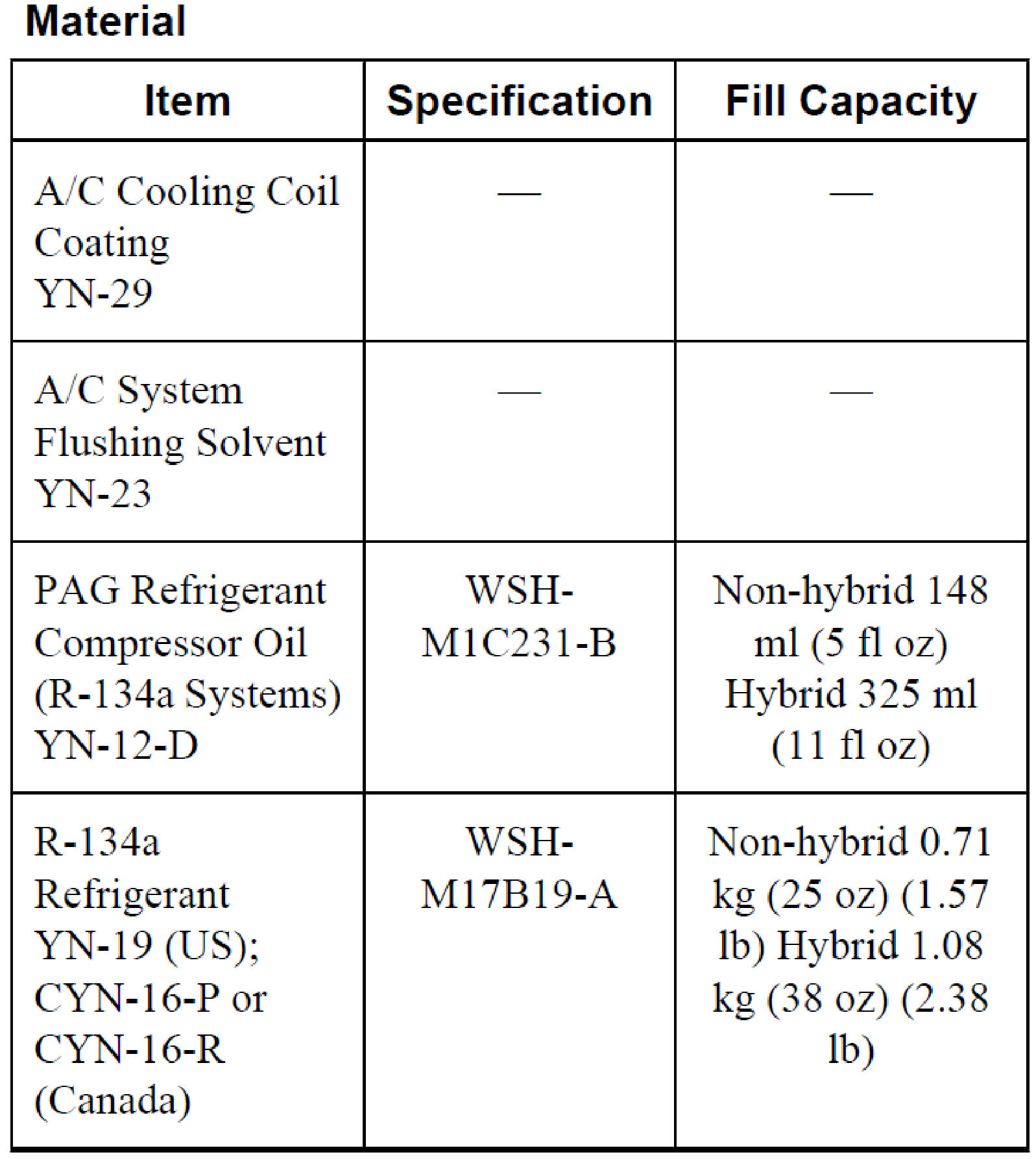 Capacity Specifications