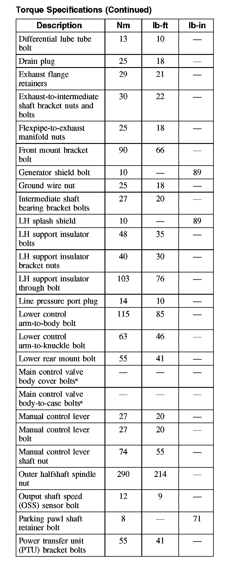 Torque Specifications (Part 4):