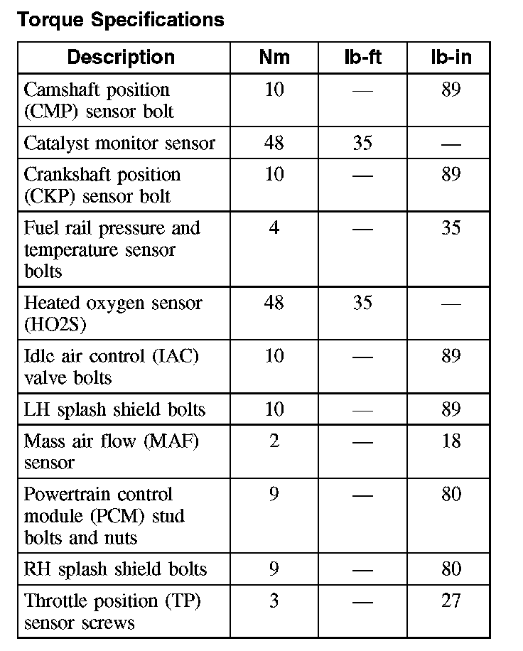 Torque Specifications: