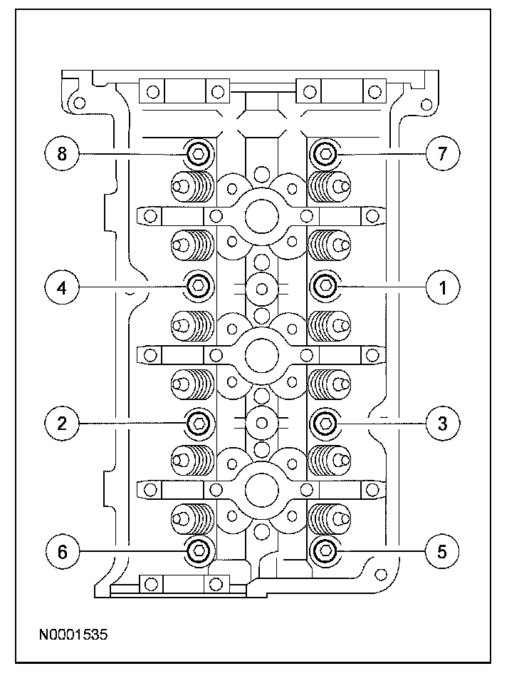 Camshaft Bearing Cap Bolts 10 Nm (89 lb-in).