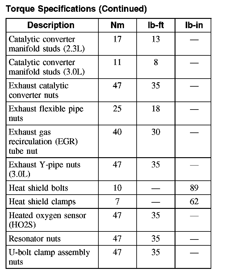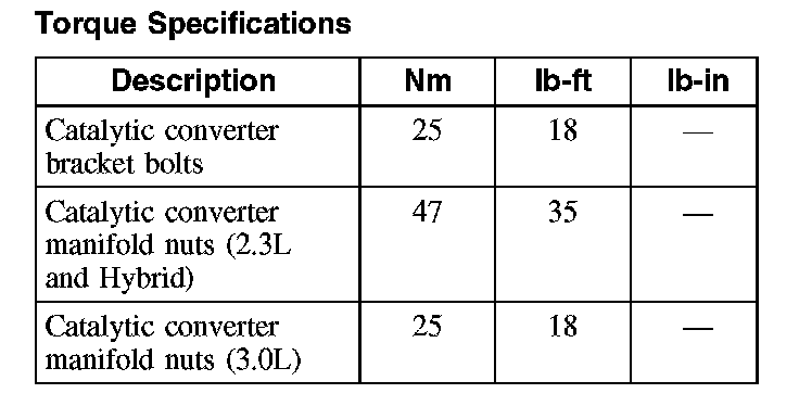 Home >> Ford >> 2008 >> Escape 2WD V6-3.0L >> Repair and Diagnosis >> Specifications >> Mechanical Specifications >> Exhaust System >> System Specifications >> Torque Specifications