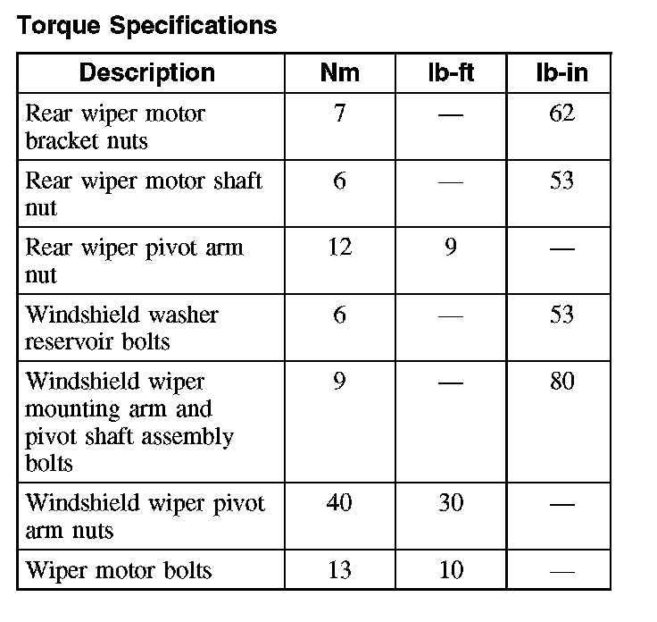 Torque Specifications