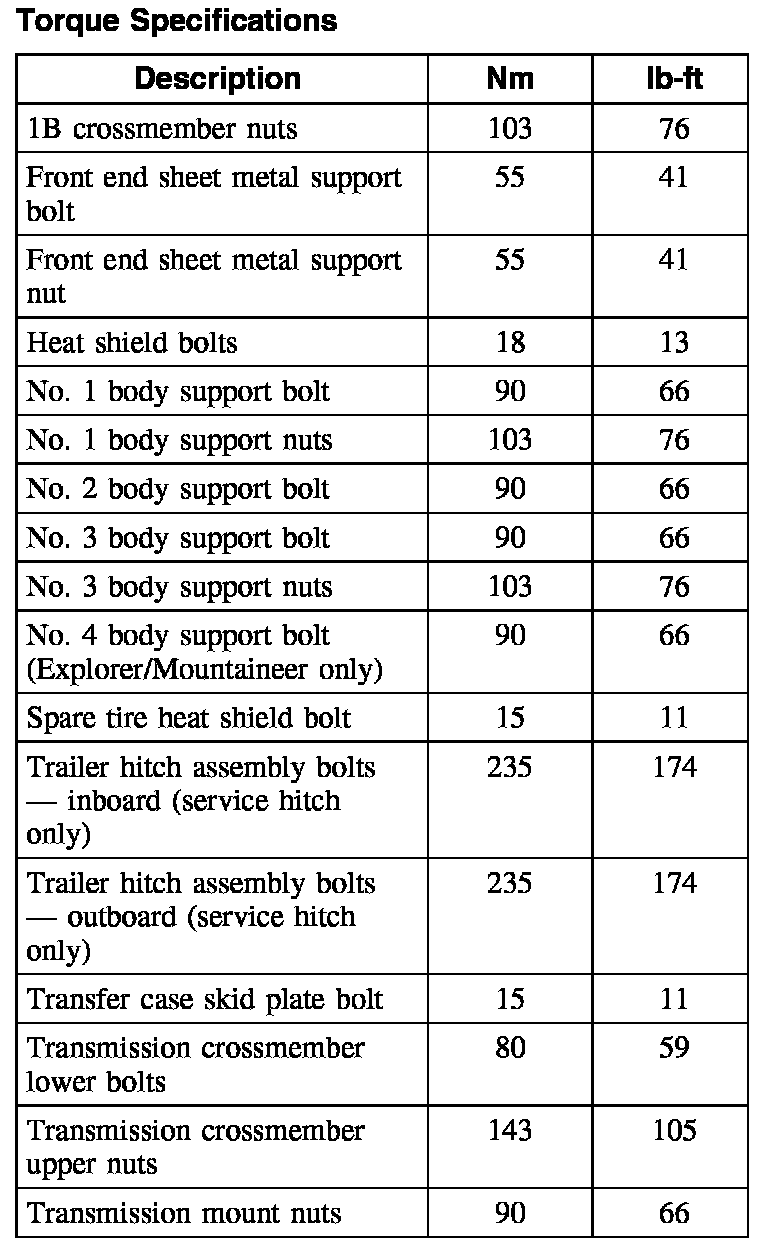 Torque Specifications: