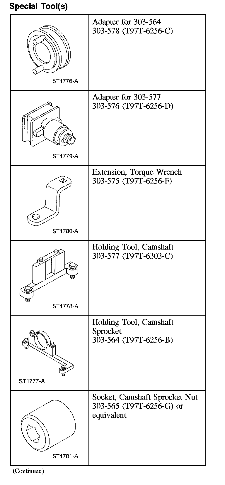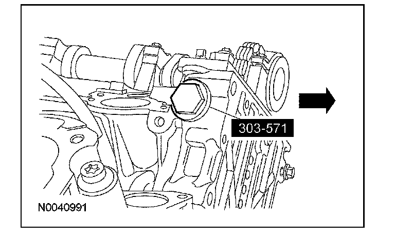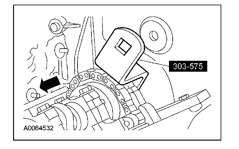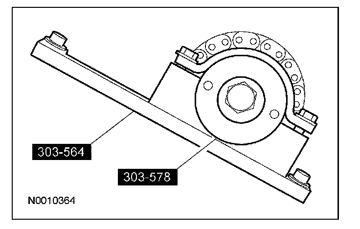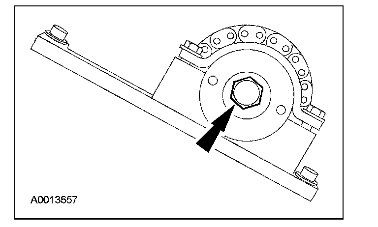2 Using the special tool with the Camshaft Sprocket Nut Socket 303-565, tighten the camshaft bolt to 61 Nm (45 lb-ft).