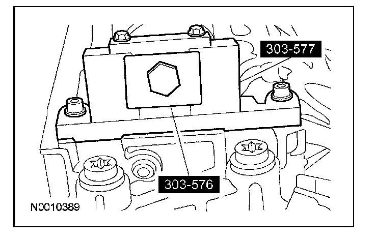 NOTE: The special tool must be installed on the damper and should contact the engine block, this positions the engine at TDC.