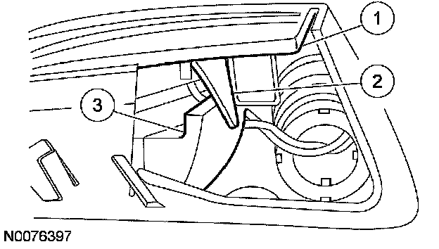 Position the exterior mirror glass to the full outboard position, so that the exterior mirror damper springs and the exterior mirror damper spring tracks are visible. To help locate the exterior mirror damper springs, refer to Exterior Mirrors - Exploded View.