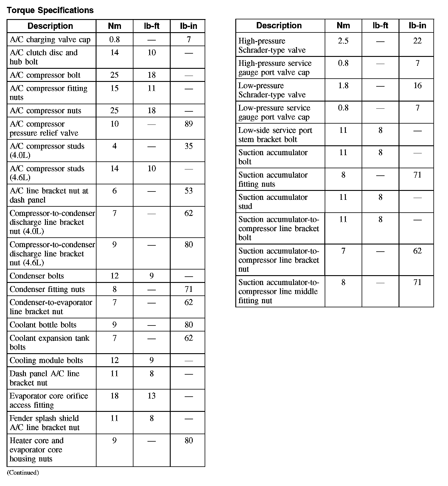 Torque Specifications