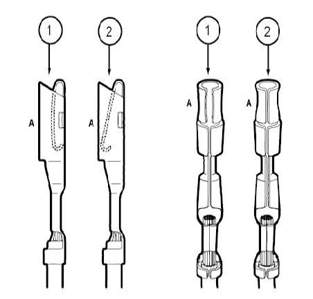 9. Holding the wire in place, barrel squeeze tool handles appropriate ratchet releases.