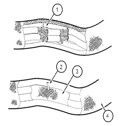 13. Use shielded heat gun to heat the repaired area until adhesive flows out of both ends of the heat shrink tubing.