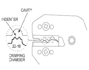 6. Center one end of the wire splice in the appropriate crimping chamber.