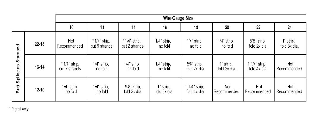 Recommended splicing method - Crimp (For 10-22 AWG Diameter Wire to Like Wire Diameter)