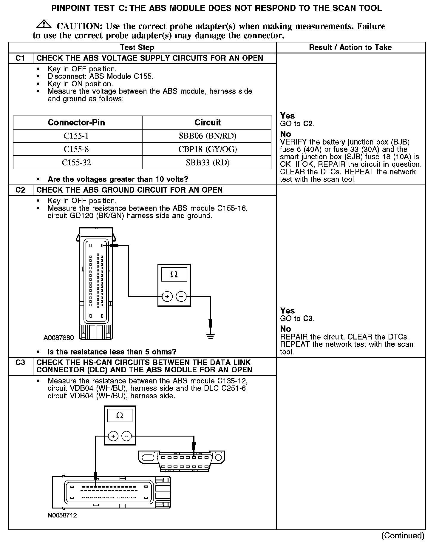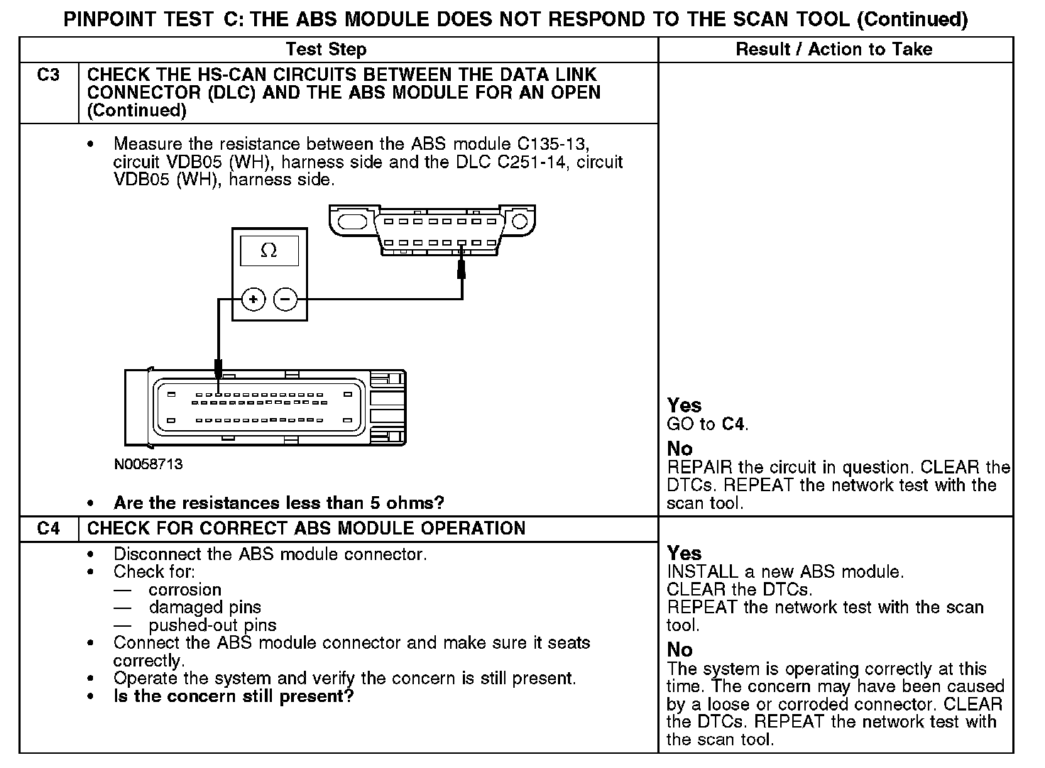 Test C: The ABS Module Does Not Respond To The Scan Tool