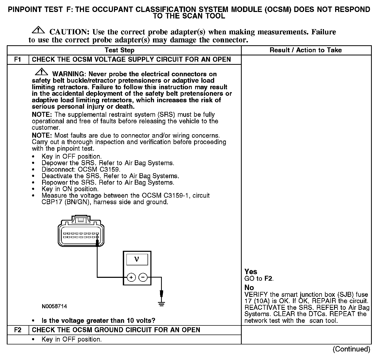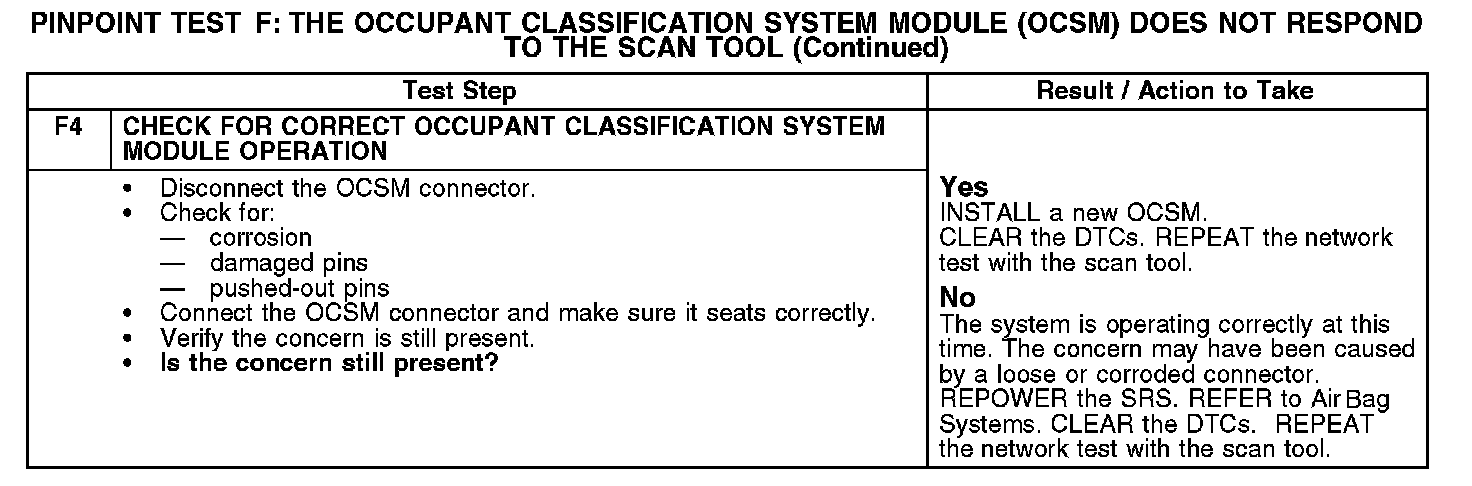 Test F: The Occupant Classification System Module (OCSM) Does Not Respond To The Scan Tool