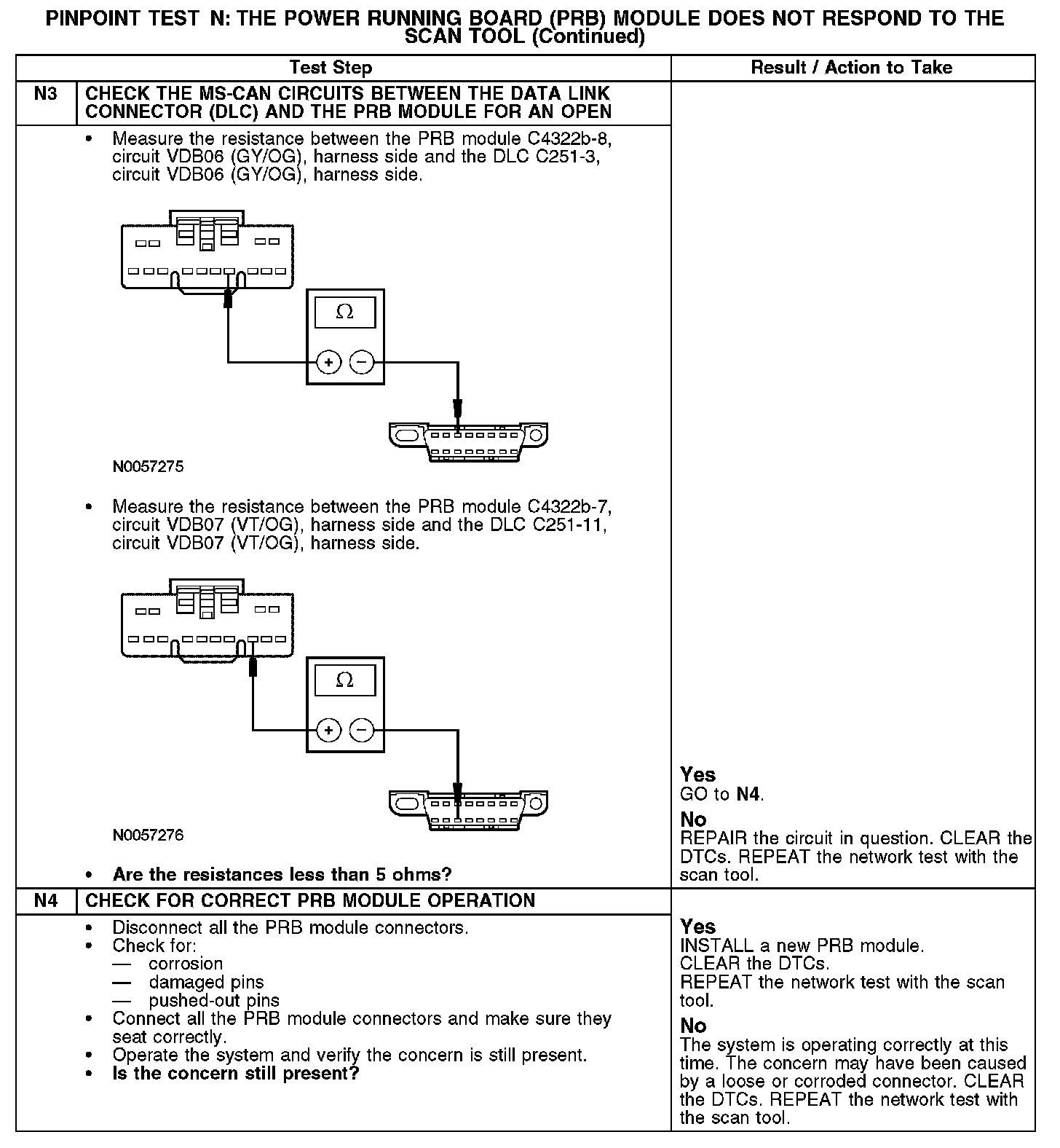 Home >> Ford >> 2008 >> Explorer 2WD V8-4.6L >> Repair and Diagnosis >> Powertrain Management >> Computers and Control Systems >> Information Bus >> Testing and Inspection >> Pinpoint Tests >> Test N: The Power Running Board Module Does Not Respond To The Scan Tool