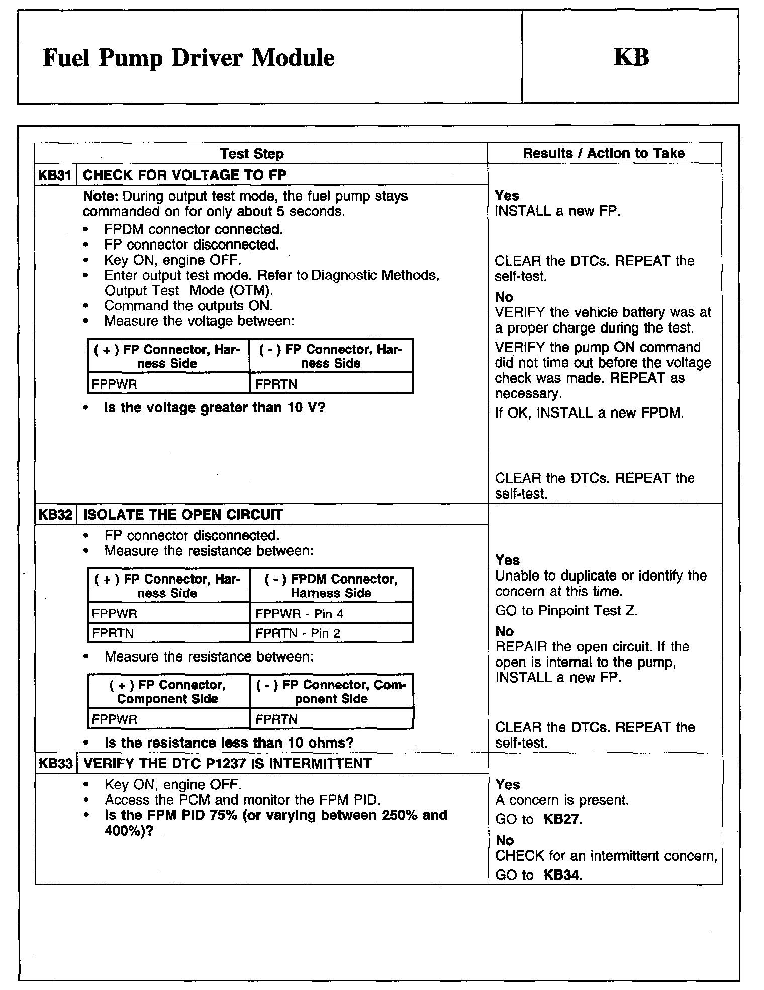 PINPOINT TEST KB: FUEL PUMP DRIVER MODULE