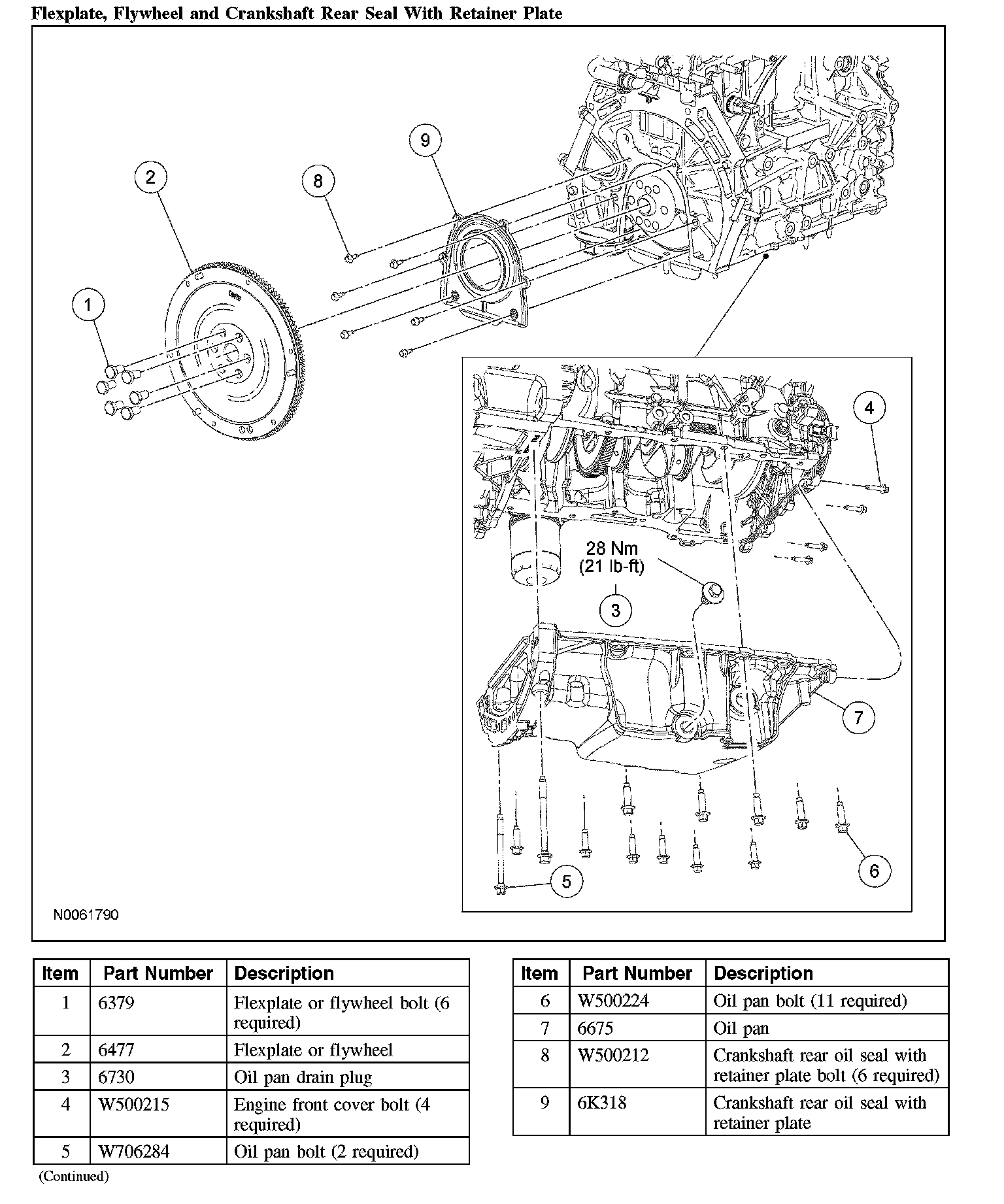 Flexplate, Flywheel and Crankshaft Rear Seal With Retainer Plate: