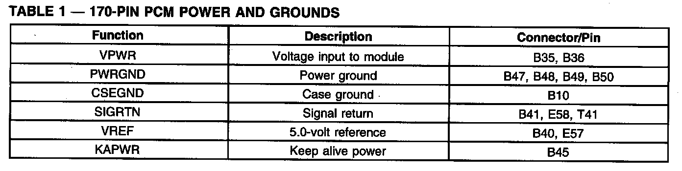 170-Pin PCM Power And Grounds: