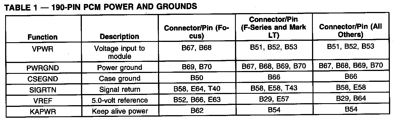 190-Pin PCM Power And Grounds: