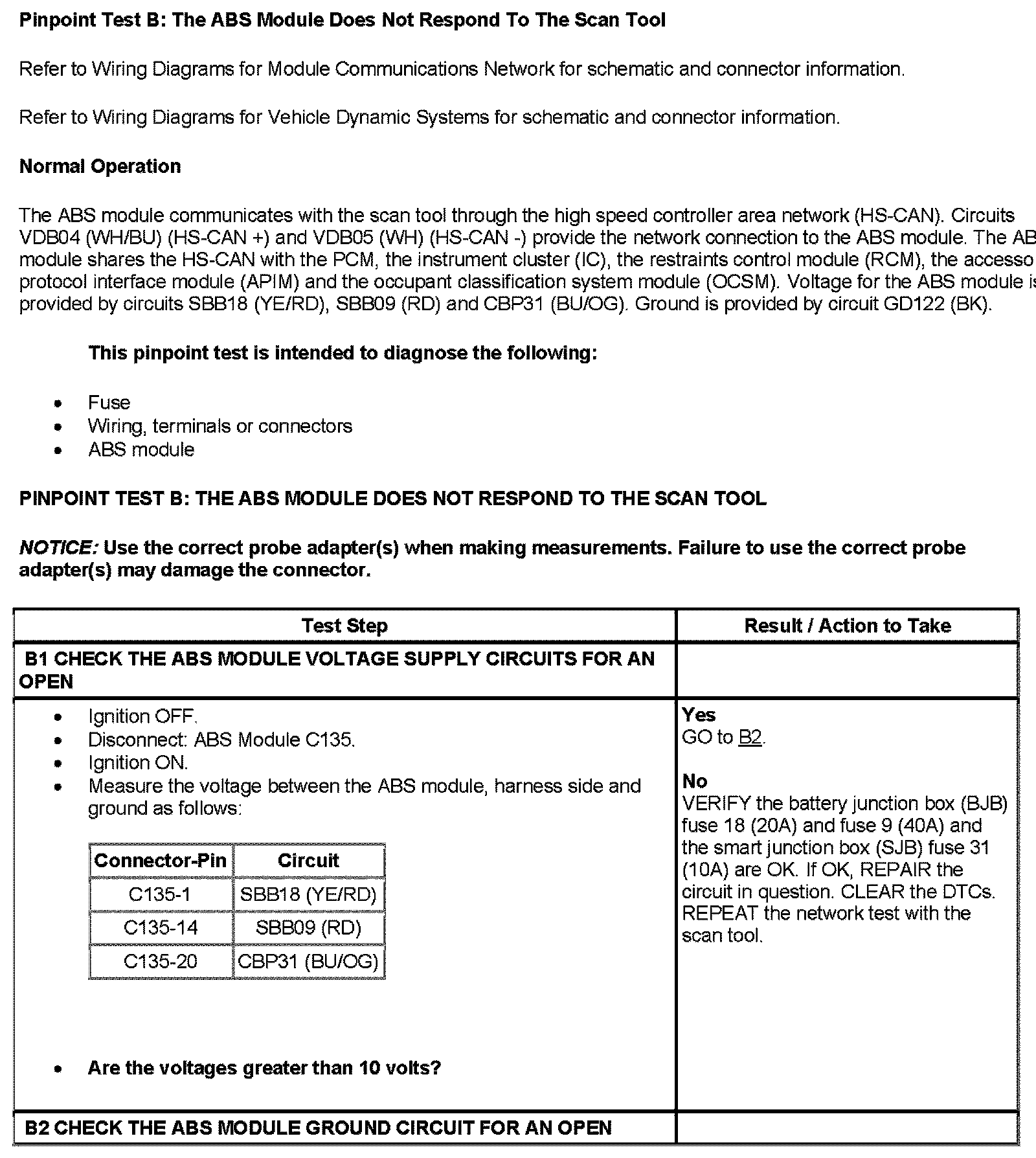 Pinpoint Test B: The ABS Module Does Not Respond To The Scan Tool