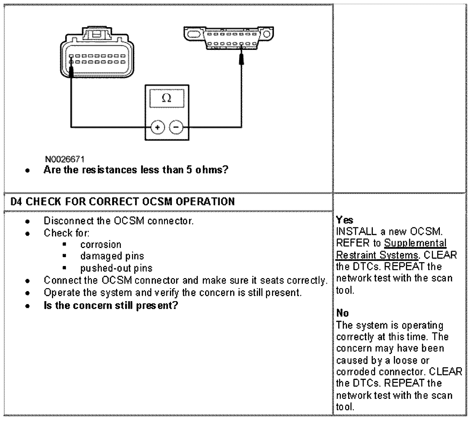 Pinpoint Test D: The Occupant Classification System Module (OCSM) Does Not Respond To The Scan Tool