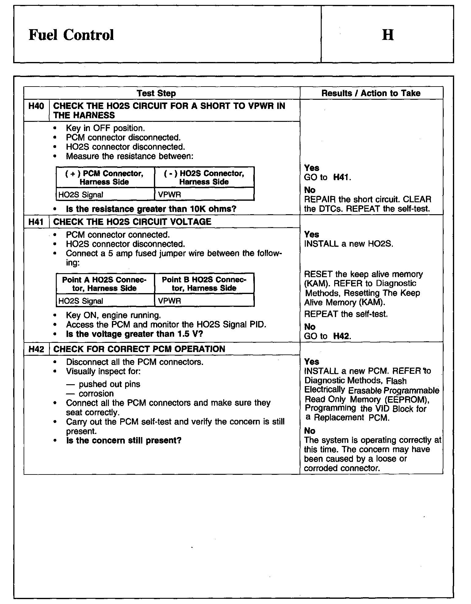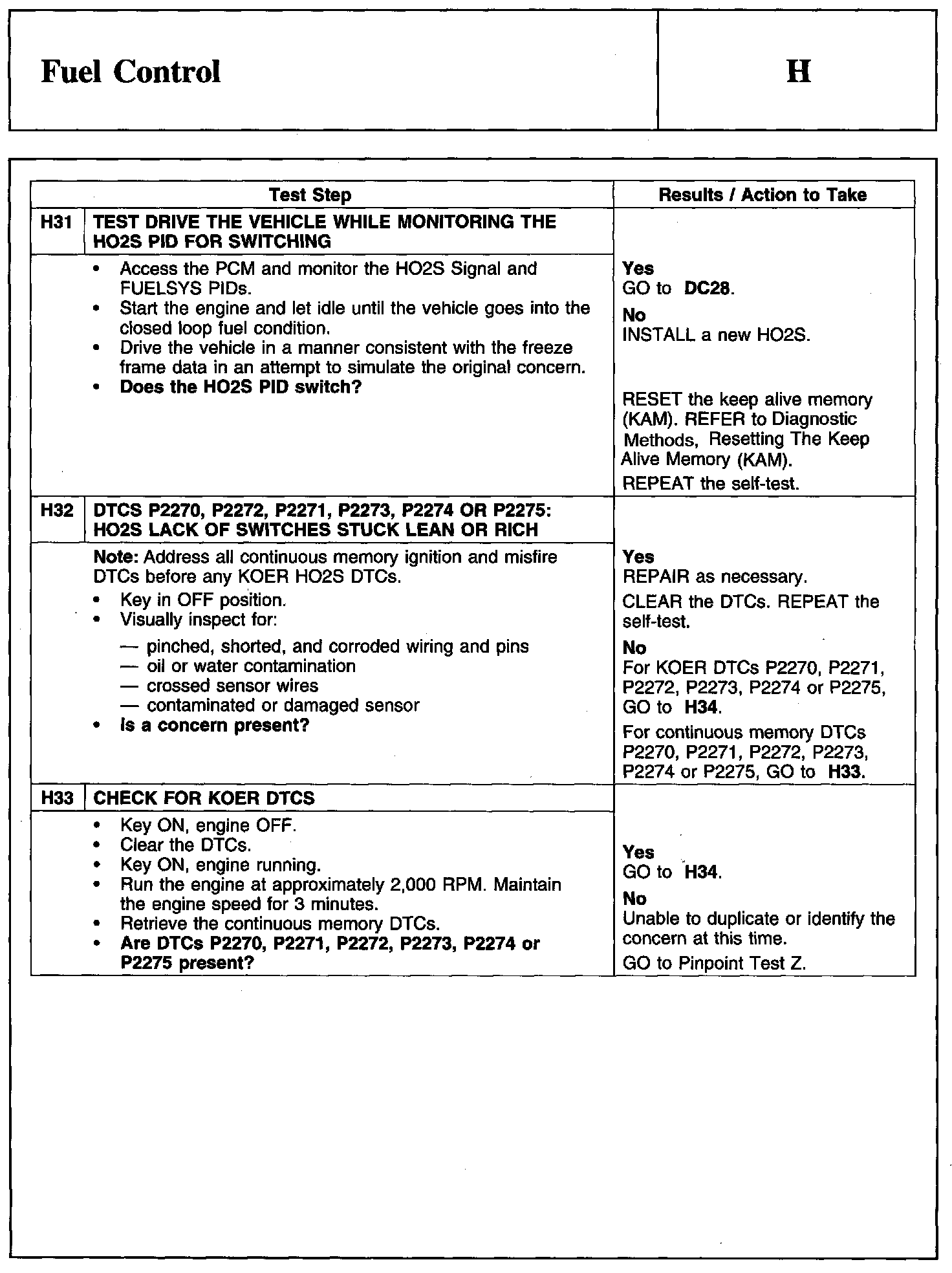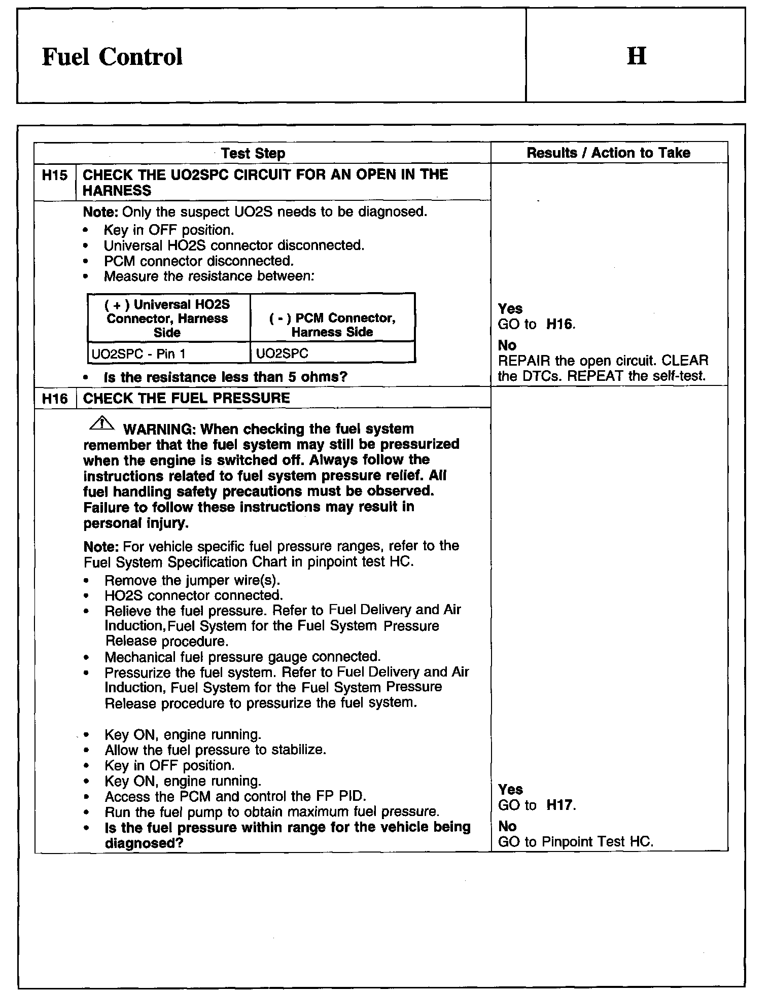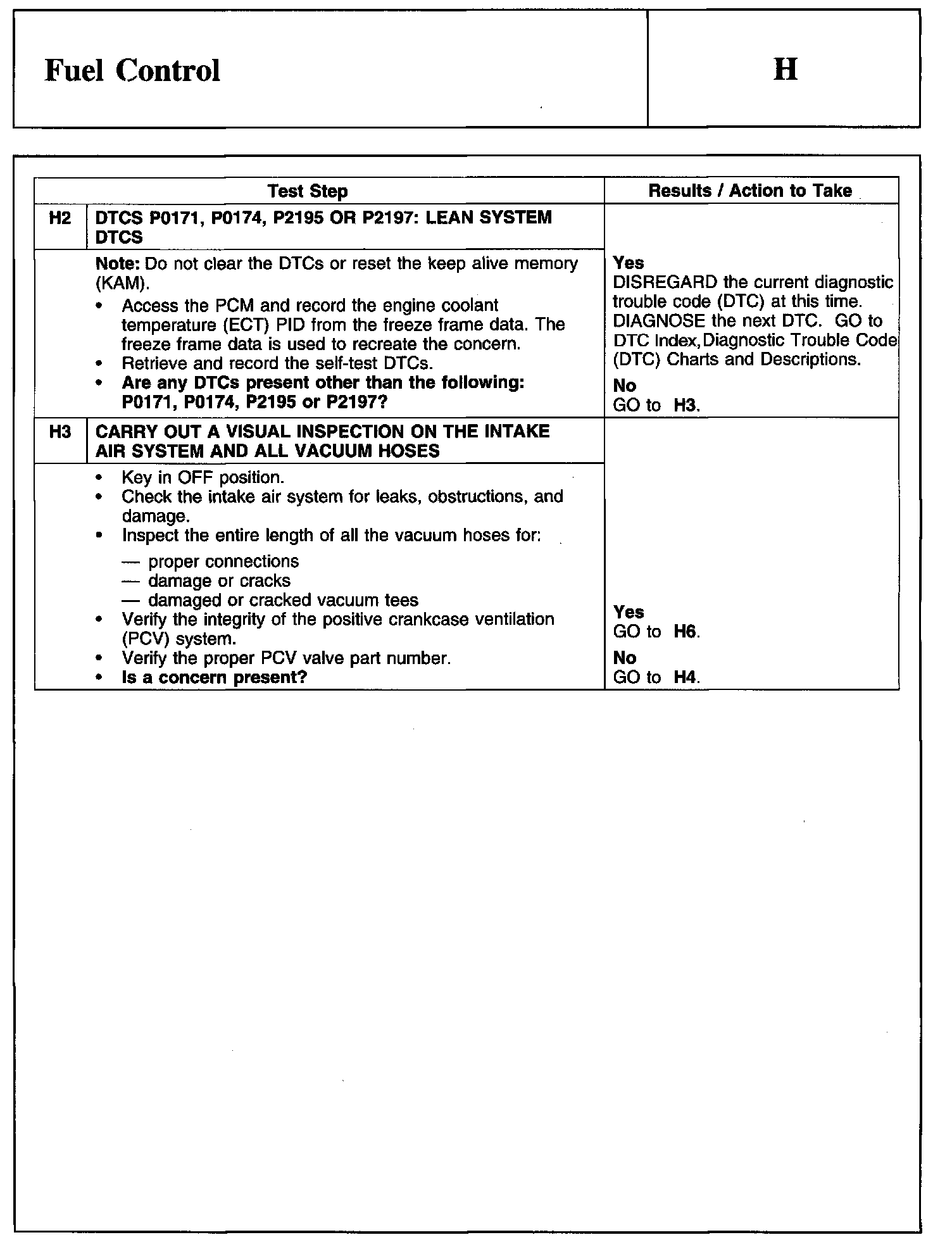 Home >> Ford >> 2008 >> Focus L4-2.0L >> Repair and Diagnosis >> Powertrain Management >> Computers and Control Systems >> Testing and Inspection >> Pinpoint Tests >> Test H: Fuel Control