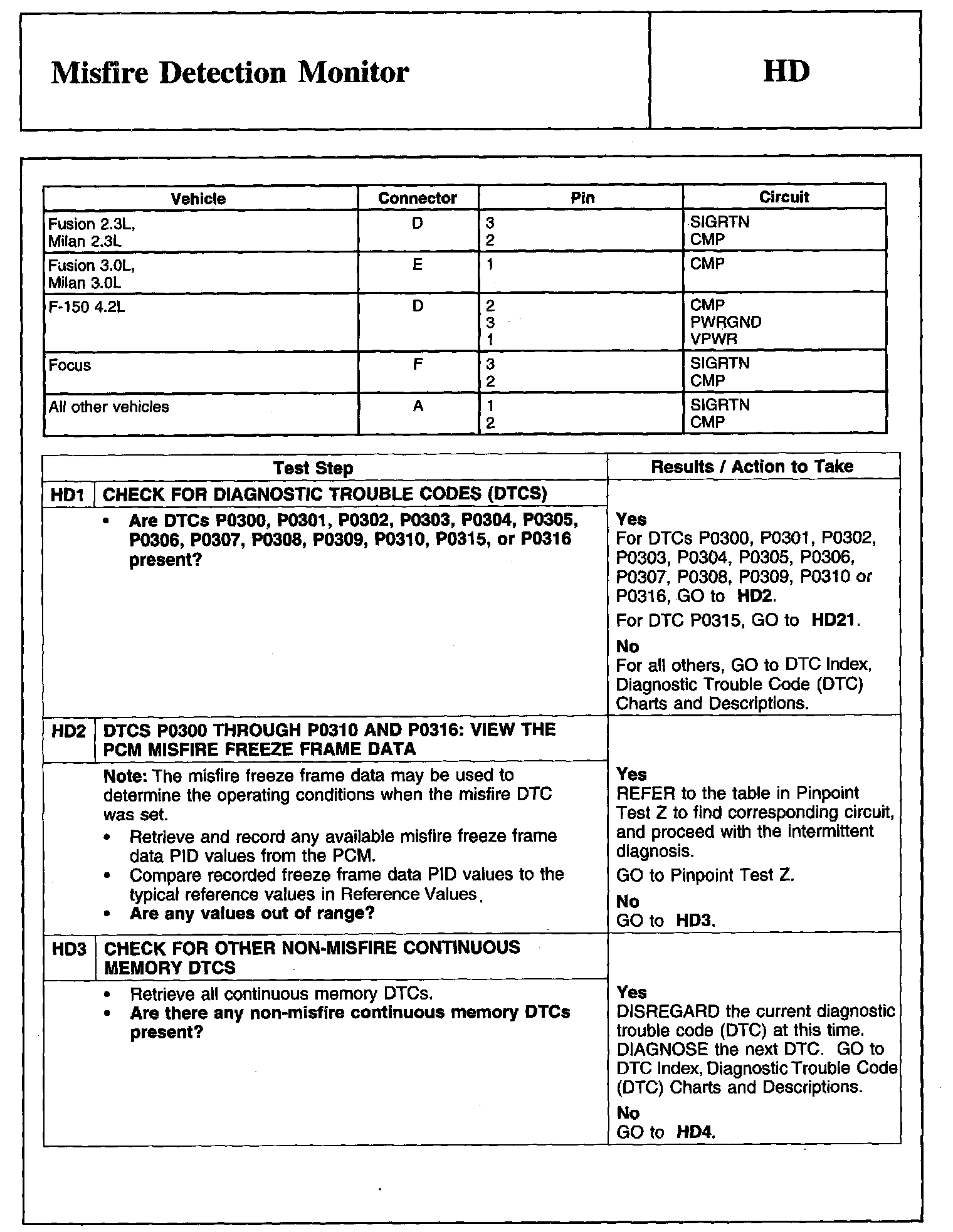 Home >> Ford >> 2008 >> Focus L4-2.0L >> Repair and Diagnosis >> Powertrain Management >> Computers and Control Systems >> Testing and Inspection >> Pinpoint Tests >> Tests HD: Misfire Detection Monitor
