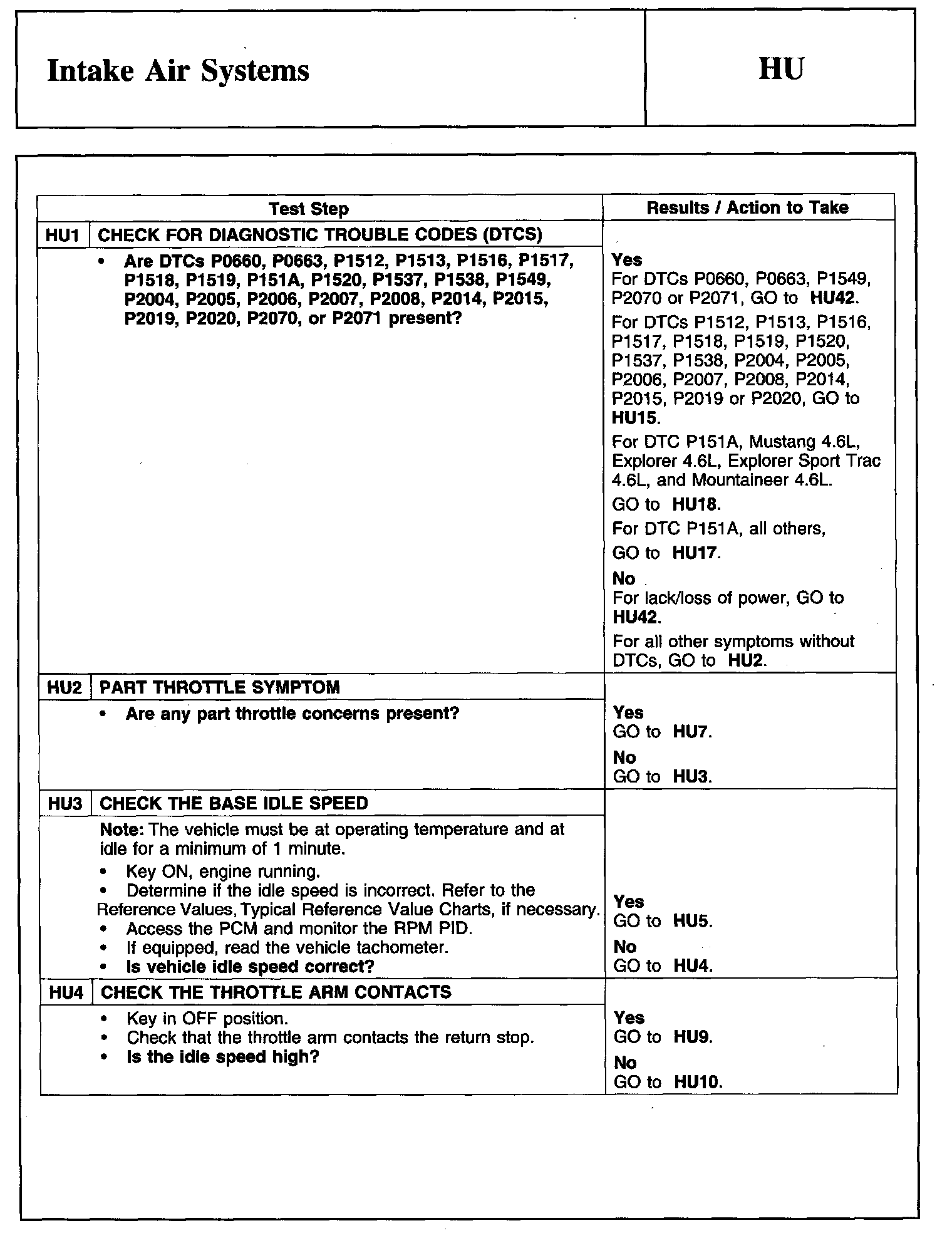 PINPOINT TEST HU: INTAKE AIR SYSTEMSDescription And Intake Air System: