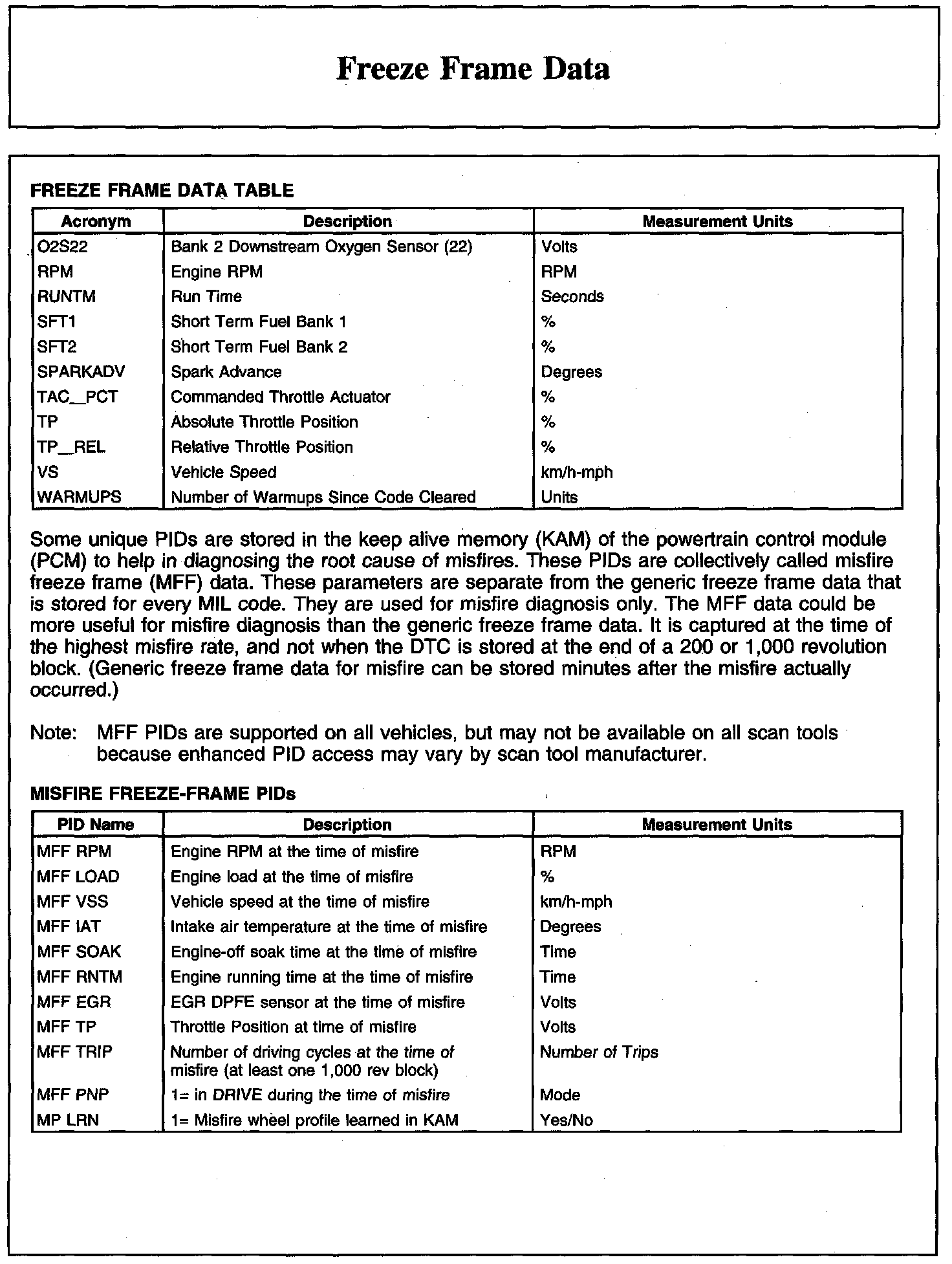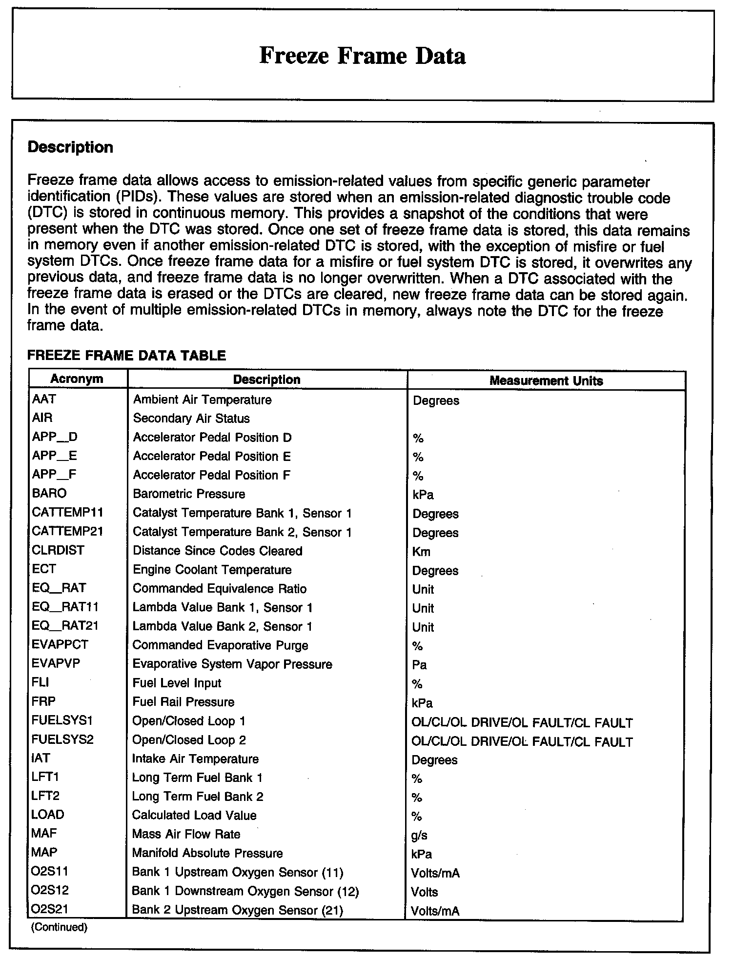 Freeze Frame Data