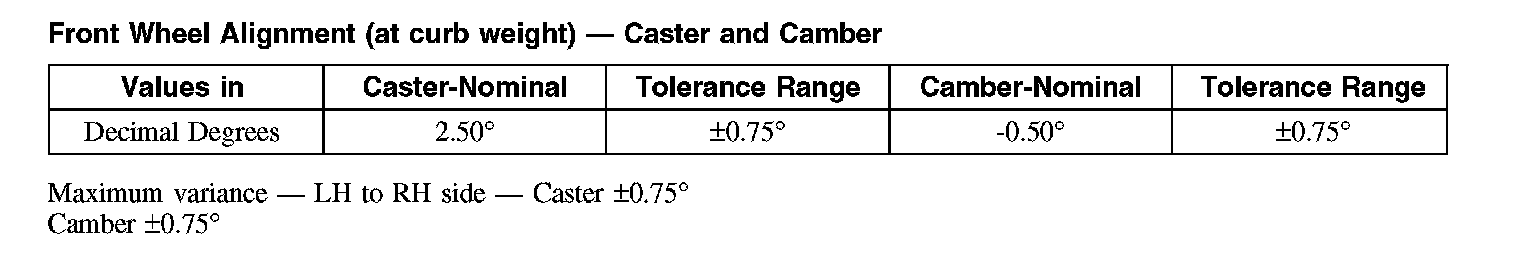 Front Wheel Alignment (at curb weight) - Caster and Camber: