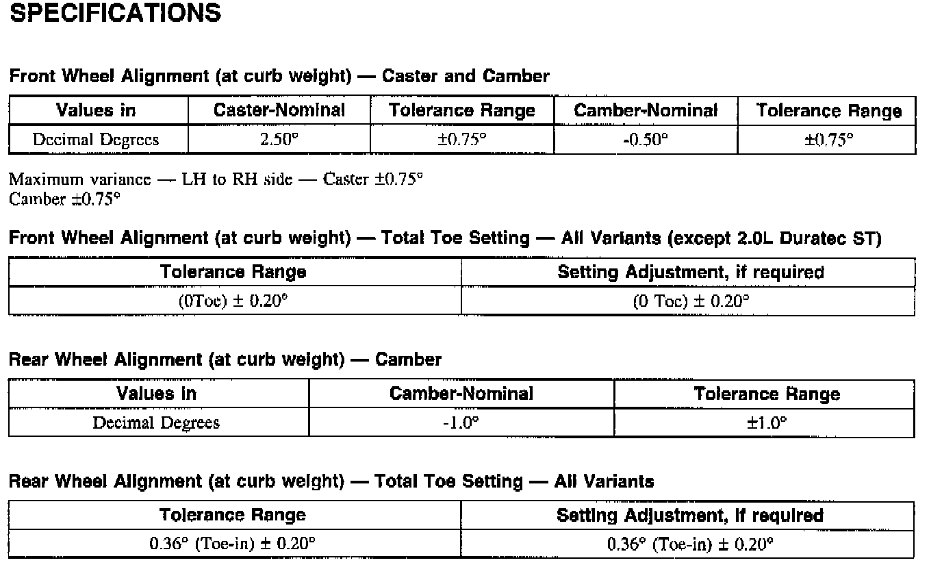 Wheel Alignment Specifications