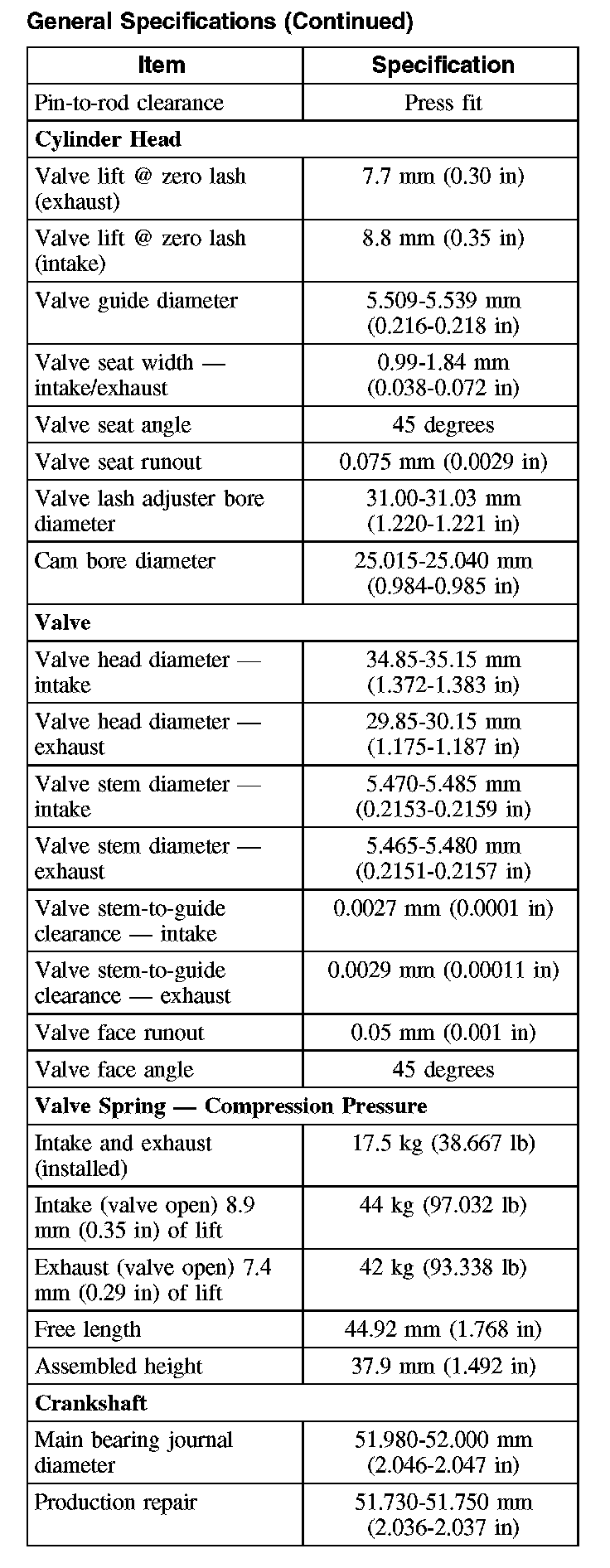 General Specifications