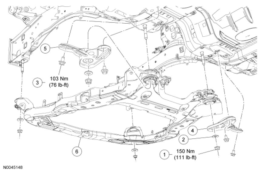 13. NOTE: The steering gear is not removed with the front subframe and must be positioned aside.
