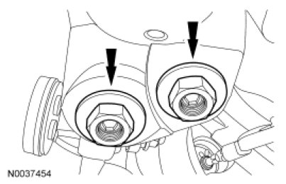 21. Remove the 2 front mounting nuts and washers from the front subframe.