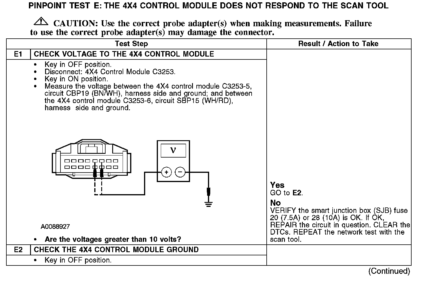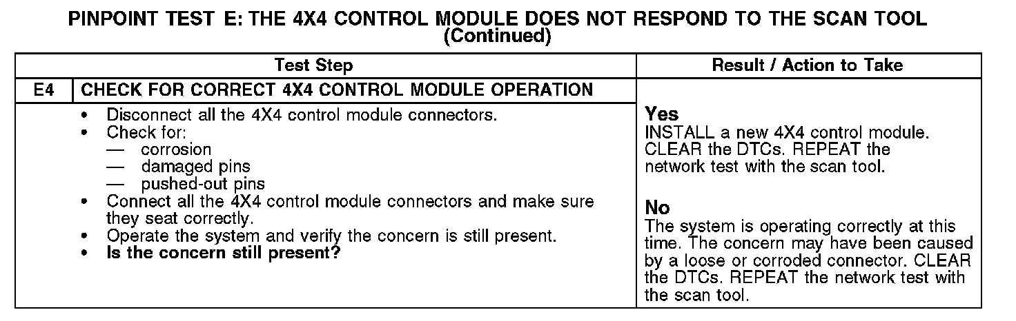 PINPOINT TEST E: THE 4X4 CONTROL MODULE DOES NOT RESPOND TO THE SCAN TOOLNormal Operation