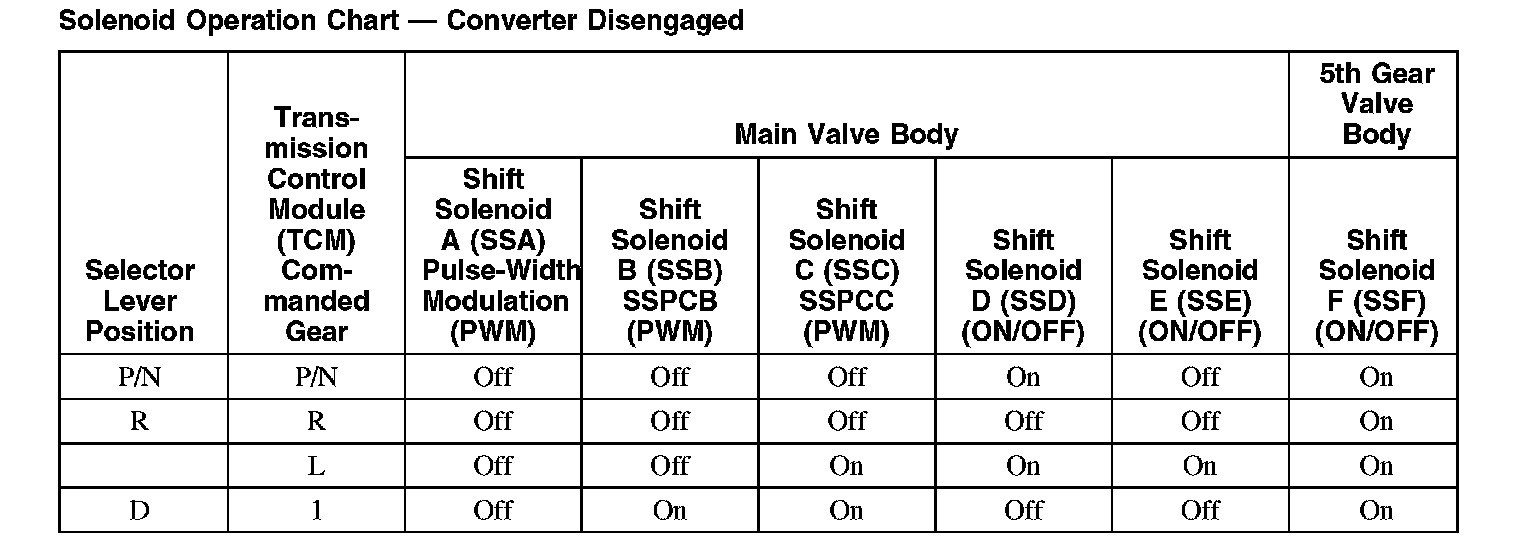 Solenoid Operation Chart - Converter Disengaged (Part 1):