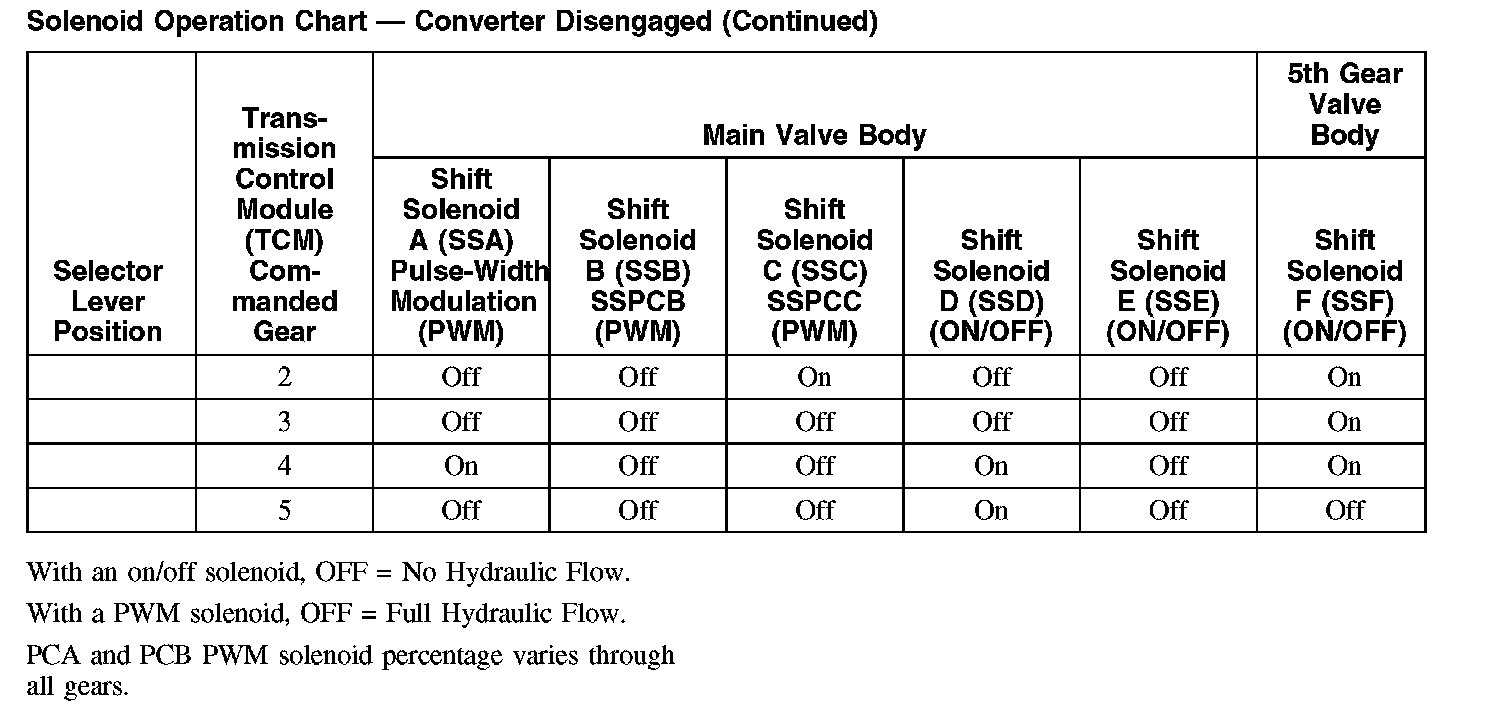 Solenoid Operation Chart - Converter Disengaged (Part 2):