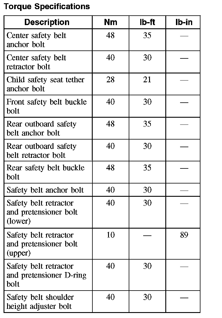 Torque Specifications: