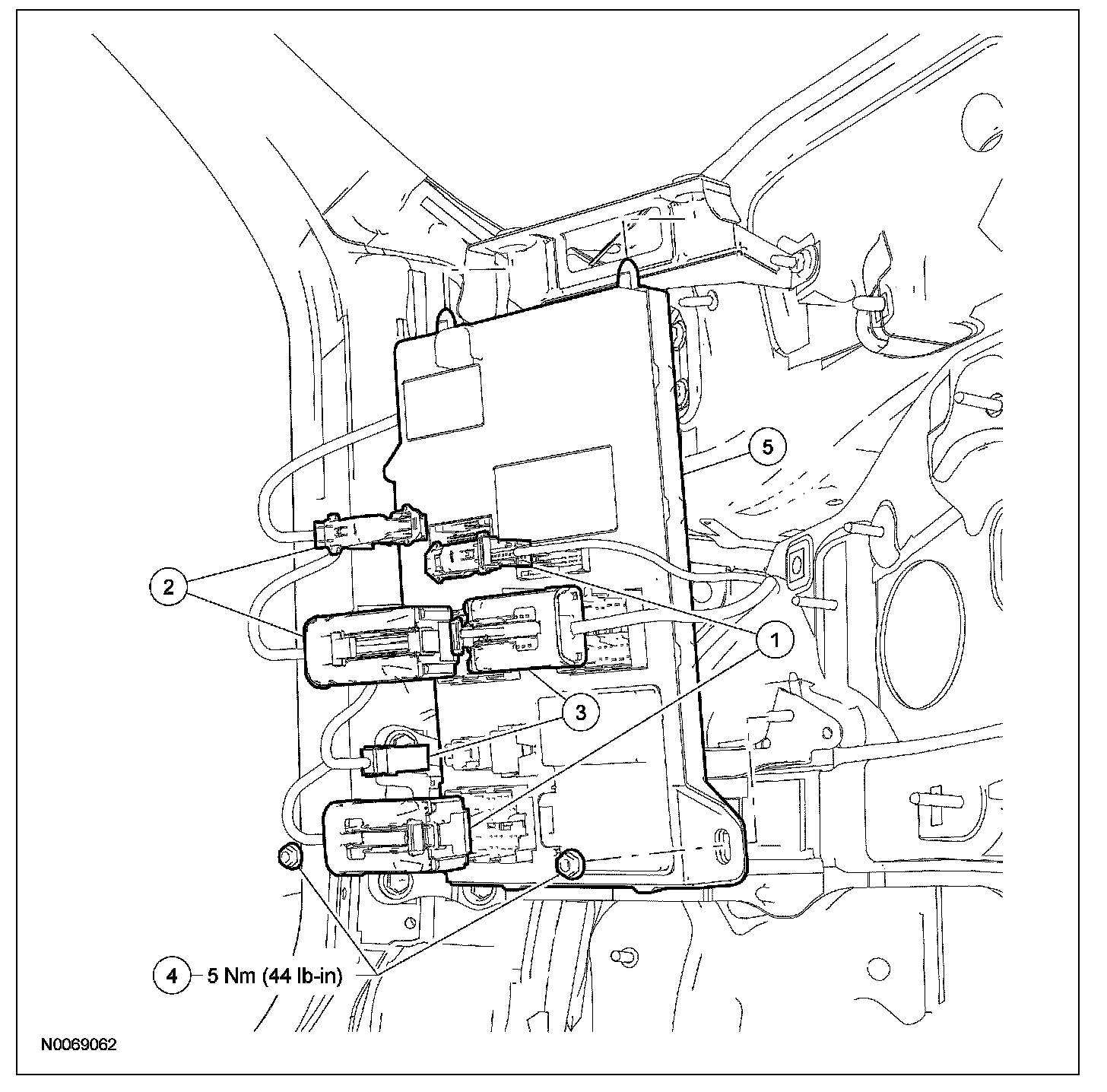 NOTE: Prior to the removal of the module, it is necessary to upload the module configuration information to a scan tool. This information must be downloaded into the new SJB after installation.