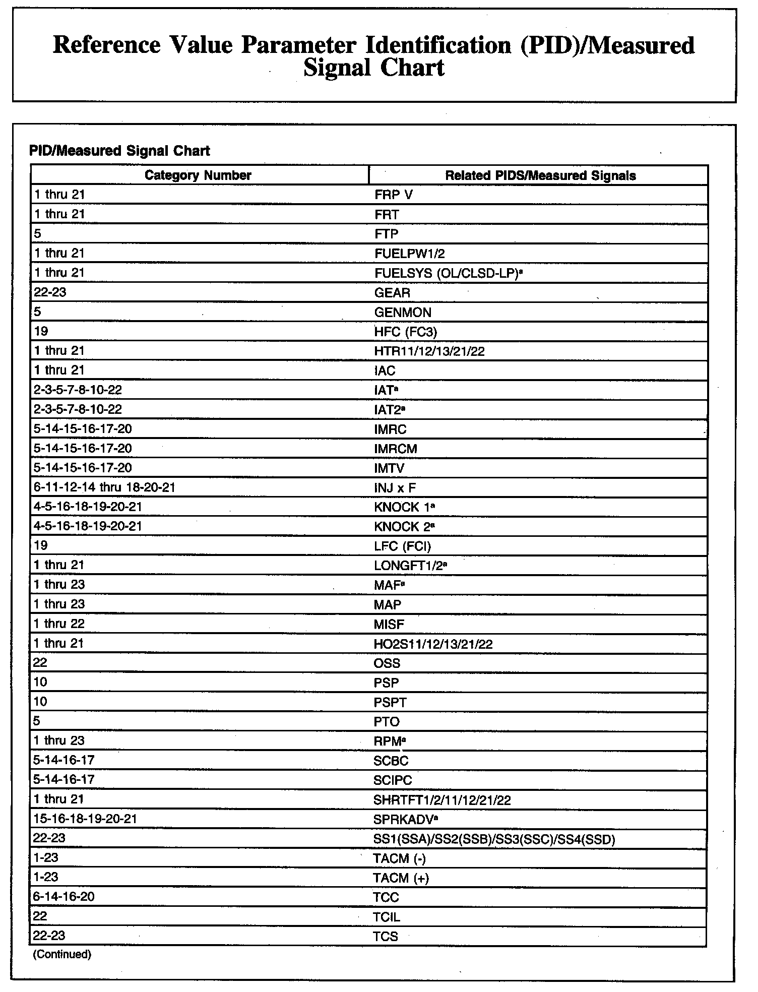 Reference Value Parameter Identification (PID)/Measured Signal Chart (Part 1):