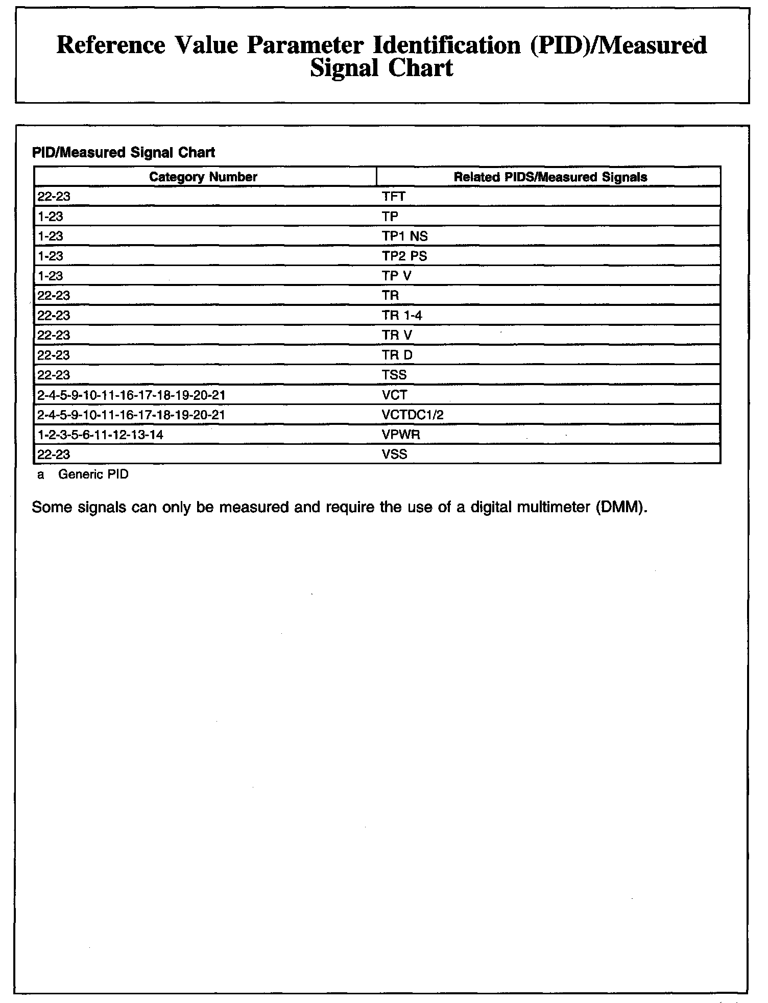 Reference Value Parameter Identification (PID)/Measured Signal Chart (Part 2):