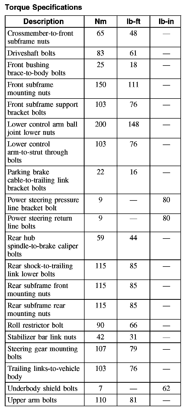 Torque Specifications: