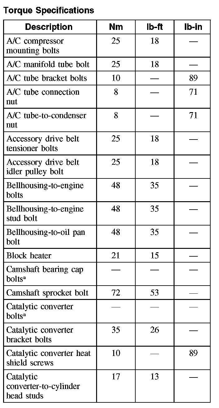 Torque SpecificationsTorque Specifications (Part 1):