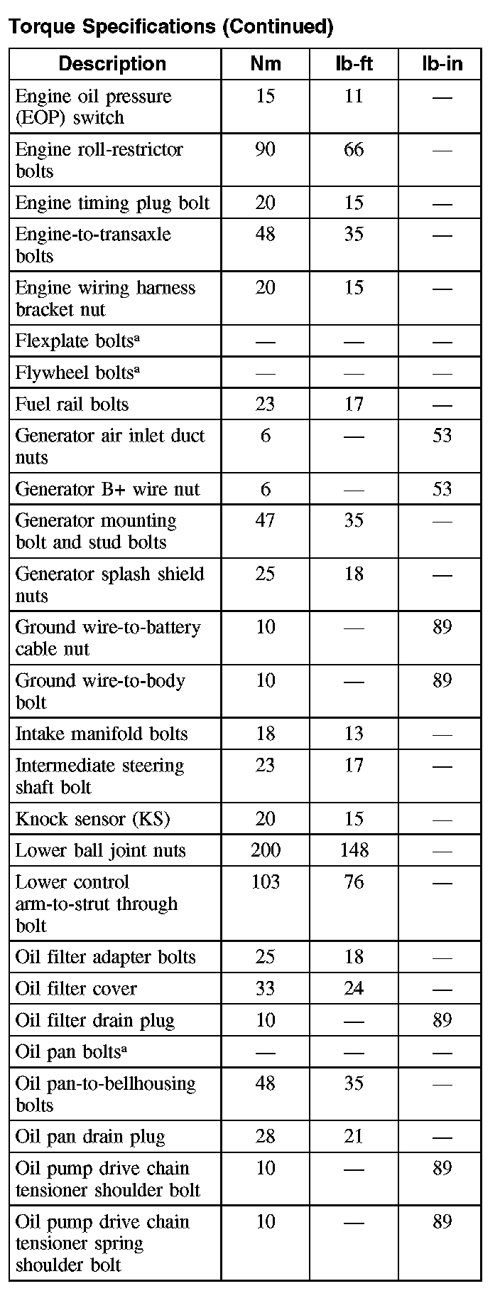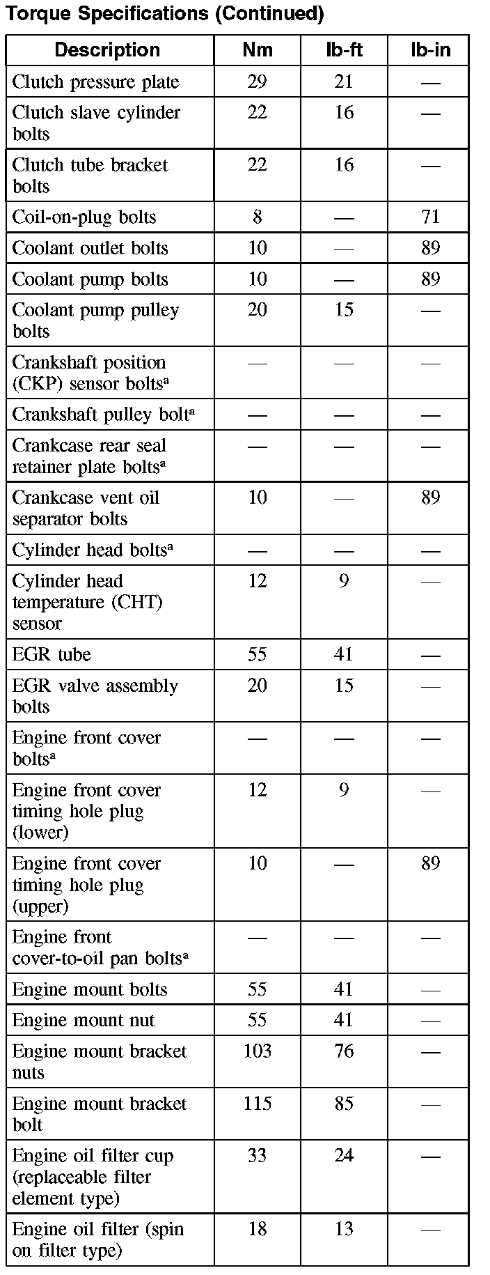 Torque Specifications (Part 4):